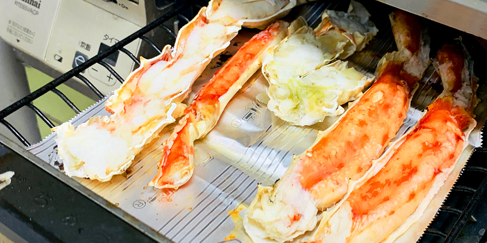 ほどよく解凍されたタラバガニを夜ごはんとして準備しようとしていた矢先に“事件”が起きました。妻がカニを焼いて、一足先に食べてしまいました。まさかのフライングにこちらは唖然。理由を聞くと「目の前に解凍したカニがあるのに待てない」と、ある意味ごもっともな答えが返ってきました。