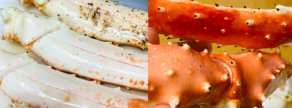 「ボイルタラバガニ ハーフポーション5L たっぷり1.6kg」税込み16,980円(送料無料、軽減税率対象)「タラバガニ肩付き脚5L たっぷり1.6kg」税込み16,800円(送料無料、軽減税率対象)