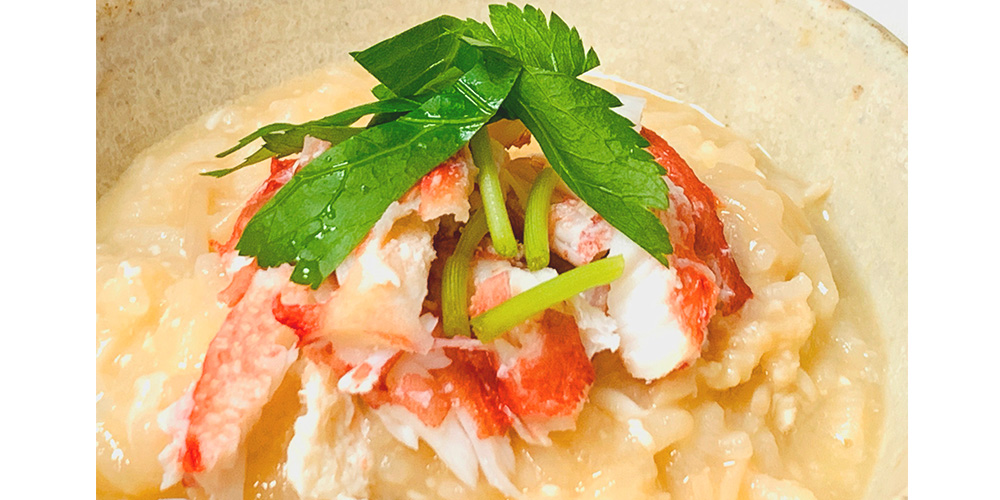シメは妻の実家から送られてきた伊賀米の新米と溶き卵を加えて雑炊に。肩肉をほぐして加えると、プリプリとした食感が楽しめます。米の一粒ひとつぶに吸収された旨味がとっても濃厚で、最後のひと口までタラバガニの魅力を堪能することができました。