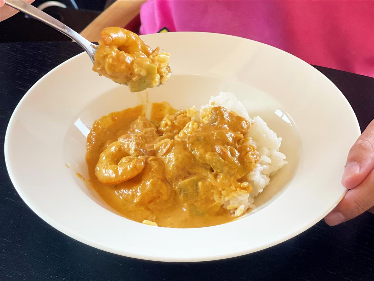 グリーンカレーにはピーマンなどのクセ強めの食材を入れるのですが、これがスパイスの力なのか、その苦味を抑えてくれるから不思議です。これなら食べられる! と子供たちもパクパク食べていました。