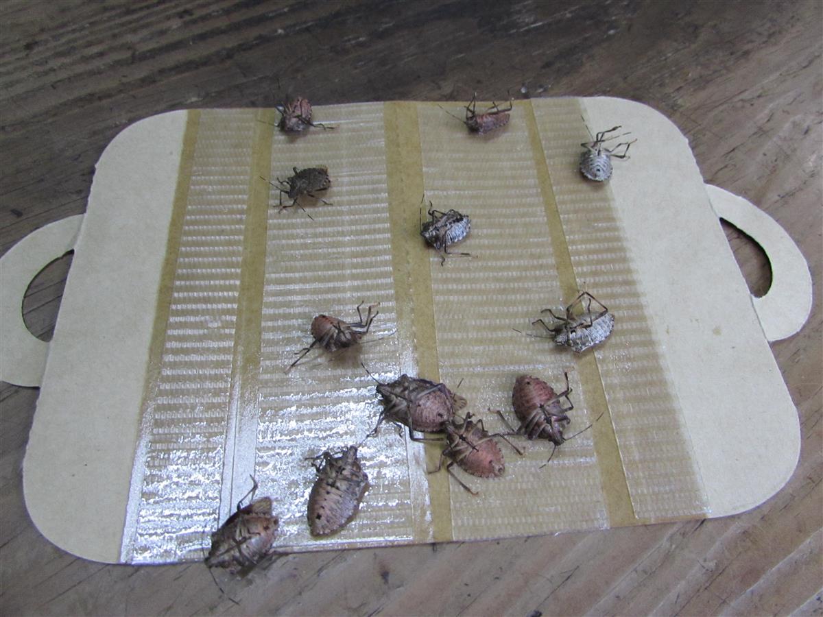 本体3300円(専用捕獲シート2枚付き)、捕獲シート8枚入り440円。カメムシだけでなく、ムカデやゴキブリなども捕獲できる。問い合わせは浜村木材カメムシさん対策室(0853・84・9787)。