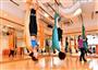 女性向けフィットネスの「Rico」。人気のハンモックを使ってヨガをする「アンティグラビティフィットネス」のレッスン=大阪市中央区のフィットネススタジオ「Rico」(南雲都撮影)
