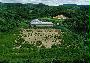 グラウンドの樹木は記者の身長を超えるまで成長し、大きな松ぼっくりが実っていた