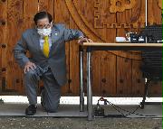 土下座する新天地イエス教会の教祖、李萬熙総会長=2日(AP)