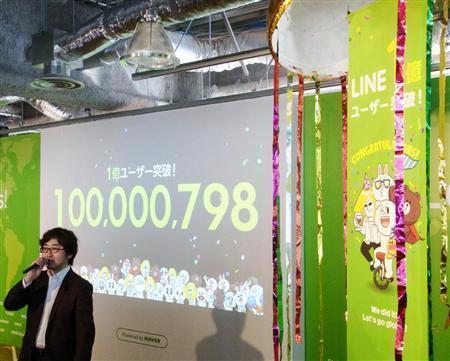 2013年1月に開かれた「LINE」の利用者1億人突破を記念するイベント。半年後の7月には1億人を突破し、破竹の勢いだ=2013(平成25)年1月18日、東京都渋谷区(産経新聞_渡部一実撮影)【拡大】