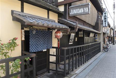花見小路通のにぎわいが嘘のような閑静にたたずむ十二段家本店。歴史の重みを感じさせる日本家屋の格子戸を開ける。靴を脱ぎ、人ひとりがやっと通れるほどの幅の急な階段を上がる。案内された和風の個室には、素人目にも趣があると分かる調度品がところ狭しと飾られていた。