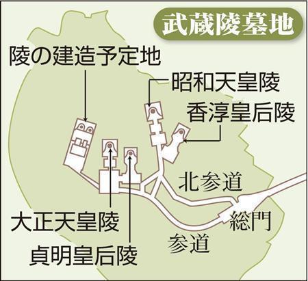 宮内庁によると、天皇陛下は大正、昭和天皇と皇后の陵があり、自らの陵も造営される予定の武蔵陵墓地(東京都八王子市)に余地がなくなってきていることを懸念。陵をこれまでより縮小し「合葬も視野に入れてはどうか」と宮内庁に提案された。