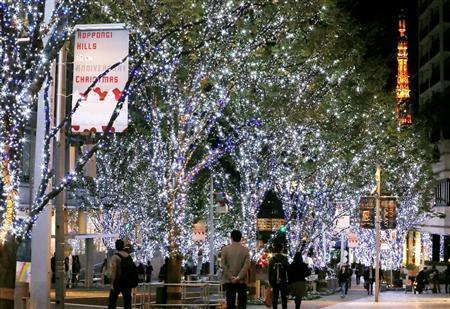 一方、東京の新名所としてすっかり定着した東京スカイツリー(東京都墨田区)ではクリスマスを控え、「ホワイトクリスマス」をイメージした緑色と白色に彩られたツリーが夜空に浮かび上がった。12月25日まで、キャンドルをイメージした赤色など期間限定の5種類のライティングが楽しめる。足元の「東京スカイツリータウン」でも約50万個のLEDが点灯し、周囲は華やかなムードに包まれている。