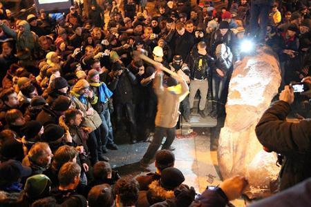 (12月)8日には、ウクライナ独立の際にも取り壊しを免れたウラジーミル・レーニン像がついになぎ倒された。