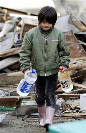 震災直後の断水で、がれきの中、片道1キロの井戸へ毎日3往復、特大の焼酎のペットボトルを手に水くみを続けた少年がいた。落ちていたくぎが靴底を貫き、足に突き刺さったこともあったという。