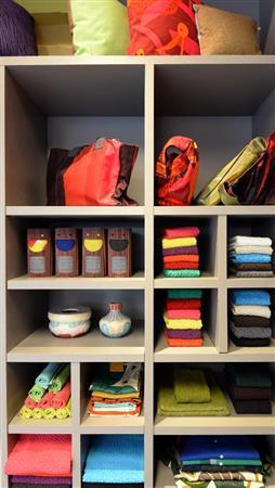 「だから華やかな色使いにこだわります。ぱあっと空に向け広げた瞬間に、その場の雰囲気を一変させ、傘をさした人の気分を盛り上げることができるように。それが街全体に広がったら、どんなにすてきでしょう」。常にそんなイメージを持ちながら、傘や布のデザインを手がける。
