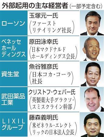 サントリーは5月に約1兆6000億円を投じて米蒸留酒大手ビームを買収、蒸留酒の世界シェア3位に躍り出た。2020年にはグループ売上高4兆円と13年比で倍増を目指している。海外展開と成長を優先して実現するためには、実績や経験が豊かな外部の経営者を招く必要があると判断した。