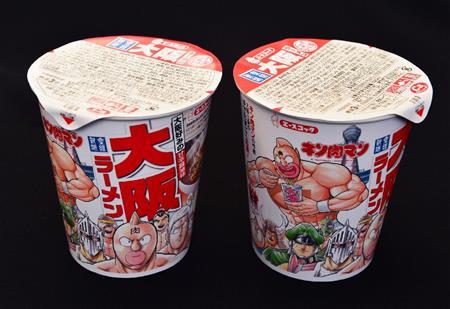 産経新聞大阪本社社会部記者が、即席麺大手のエースコック(大阪府吹田市)と共同開発したカップ麺「それゆけ!大阪ラーメン」の第4弾が8月11日に発売される。エースコックが7月16日発表した。今回は大阪出身の漫画家「ゆでたまご」(嶋田隆司さん、中井義則さん)が描いたキャラクター「キン肉マン」と大阪の名所、通天閣がパッケージに登場した。