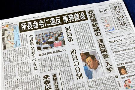 朝日新聞は5月20日付朝刊で、吉田氏が政府事故調査・検証委員会の聞き取りに答えた「聴取結果書」を入手した、と報道。解説記事では調書の公開が限定されていたことを指摘し、「全資料 公表すべきだ」と主張していた。だが、政府が実際に調書を公表した今月11日、朝日自身が記事を取り消すという皮肉な結果になった。