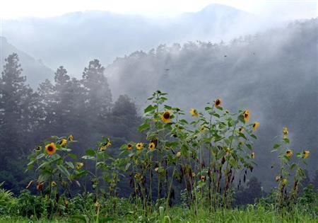 東京都奥多摩町の海沢(うなざわ)を歩いた数年前のこと。突然の雷雨がやってきて、屋根のあるところに逃げ込んだ。夏の終わりを告げるような大音響だ。カミナリを撮るどころではない。野外で傘を差して三脚を立て、カミナリを狙うのは自殺行為なのだ。ゴロゴロドカンときたら一巻の終わり。しばらくすると雨は通り過ぎて、咲き残ったヒマワリのまわりにはトンボが群れていた。雨のおかげで、奥多摩の晩夏の光景を撮れた日だ。