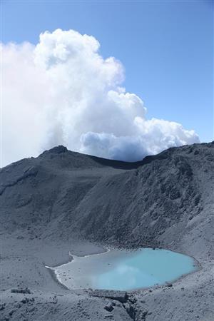 噴火から2日が過ぎても、火口からは白い煙がもくもくと高く上がっていた。山肌を覆う灰は太陽に照らされて乾燥し、ところどころにひび割れが生じていた。