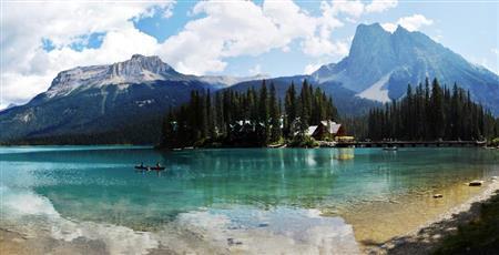 カナディアン・ロッキーの入り口、バンフの街から車で約3時間のヨーホー国立公園にあるエメラルド湖。ここから東に見えるワプタ山の稜線(りょうせん)には、1909年に古生物学者、チャールズ・ウォルコットが生物学の歴史を変える化石群を発見した「ウォルコット採石場」がある。