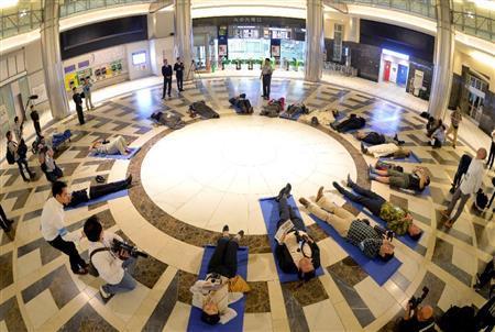 ツアーはまず、山手線5番ホームで午前1時3分発の品川行きの最終電車を見送ってスタート。その後丸の内南ドームの床にヨガマットを敷いて寝転がり、東京駅の谷口善秀(よしひで)副駅長(44)の説明を聞きながら八角形のドームの天井に施された装飾を鑑賞した。ある参加者は「駅で酔っ払って寝たことはあるが、こんな風に寝るのは初めて」と言いながら、装飾を一つ一つ確認していた。また、8つしかそろっていない干支(えと)のレリーフや豊臣秀吉のかぶとをモチーフにしたキーストーンなど、東京駅の設計者、辰野金吾(たつのきんご、1854~1919年)がドーム内に仕掛けた謎の装飾に話が及ぶと参加者から「ほーっ」と感嘆の声が上がった。