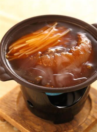 看板メニューの「青鮫のフカヒレの姿煮」は文句なしの絶品。単品だと1万98円だが、これがメニューに入った1万7820円のコースが10月31日まで1万4256円で楽しめる(いずれも税・サービス料込み)=2014年10月9日、京都市中京区(恵守乾撮影)【拡大】