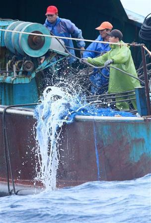 波高3メートル。チャーターした10トンに満たない漁船は大荒れの海に翻弄され続けた。船体がうねりの間に入り“海面の壁”が視界を遮る。肉眼で密漁船を捜すのは不可能に近い。レーダーを頼りにたどり着いた現場には6隻の中国船。逃げ遅れた1隻が懸命に網を巻き上げている。密漁船との距離100メートル。乗組員の笑顔に怒りが込み上げてくる。