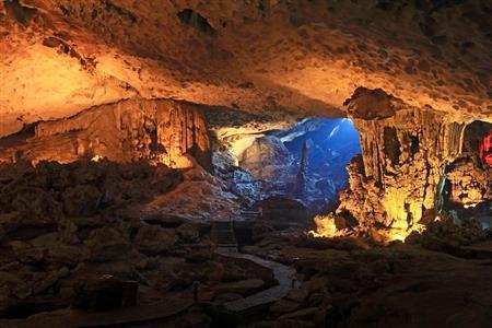 中国・桂林からハロン湾まで連なる石灰岩層の浸食が不思議な景観をつくり出し、スンソット洞窟をはじめ島々には多数の鍾乳洞が存在する。