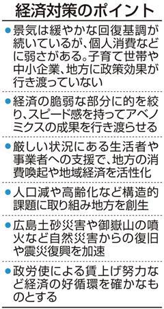 生活者・事業者支援では、物価の上昇や円安の進行で負担が増えている家計のほか、中小、零細企業にも目配りした。新設する交付金では地域限定で特典付きの商品券を配ったり、低所得者向けに灯油購入費を補助する。全国からの需要を呼び込むため、特産品の販売や旅行券の発行も想定している。