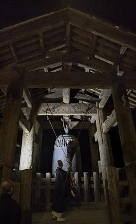 その人の列を外れ、国宝洪鐘(おおがね)を目指す。こちらは初詣の人たちではなく、お坊さんたちが突く。