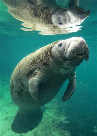 フロリダ半島からメキシコ湾、カリブ海にかけて生息するアメリカマナティー。人魚のモデルとも言われるが、体重は1トン近くにもなる丸い巨体とうちわのような尾びれ、シワシワの顔は愛嬌(あいきょう)たっぷり。沿岸部の浅瀬や河口などに生息し、水草のアマモやホテイアオイなど食べる草食性の哺乳類だ。