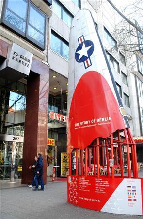 旧西ベルリンの繁華街クーダム通り。観光客も多く、高級ブランド品店などが並ぶ大通りの商業ビル前に、戦闘機の翼をかたどった大きなオブジェがそびえていた。ベルリンの歴史を紹介する私設博物館「ヒストリー・オブ・ベルリン」の目印だ。ビルの地下部分に併設された核シェルターも公開されている。