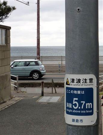鎌倉の町を歩くと、電柱や公共の建物に『ここは海抜◯メートル』という小さな表示が目につく。ほとんどが2011年3月11日の東日本大震災以降に掲示されたものだ。