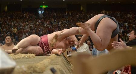 大相撲夏場所は16日、東京・両国国技館で7日目を行い、白鵬、日馬富士(はるまふじ)の両横綱は1敗を守った。2度目の7連覇を狙う白鵬は厳しい攻めで佐田の海を送り出し、日馬富士も北太樹(きたたいき)を送り出した。関脇照ノ富士が大関琴奨菊を力強く寄り切って6連勝で1敗を堅持。琴奨菊は3敗目。大関稀勢の里(きせのさと)は大砂嵐(おおすなあらし)を突き落として5勝目を挙げたが、大関豪栄道は小結栃煌山(とちおうざん)に敗れ3敗目を喫した。左膝に不安を抱える遠藤は荒鷲(あらわし)を寄り切って初白星。1敗は2横綱、照ノ富士に平幕の高安(たかやす)ら8人となった。