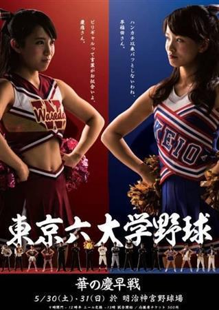 東京六大学野球の優勝をかけて30日から東京・神宮球場で行われる早慶戦のポスターが話題だ。ポスターは全5種類で、両大学の応援団などが作成。チアリーダー版では、落ちこぼれだった女子高生が努力して慶大に入学する実話“ビリギャル”を材料に、早大側が「ビリギャルって言葉がお似合いよ、慶応さん」。