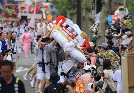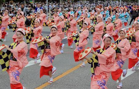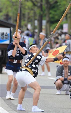 秋田市で5月30、31の両日、東日本大震災の復興祈願で東北6県の代表的な祭りが集まる「東北六魂祭」が行われた。夏の訪れを感じさせる暑さの中、市内の大通りを1000人以上の踊り手たちがパレードし、沿道に集まった観客から拍手や歓声が上がった。六魂祭は2011年に仙台市で初めて開かれ、今年で5回目。