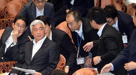 答弁をめぐり再三審議が中断した衆院平和安全法制特別委員会。左から岸田文雄外相、中谷元(なかたに・げん)防衛相=2015年6月10日午後、国会・衆院第1委員室(酒巻俊介撮影)【拡大】
