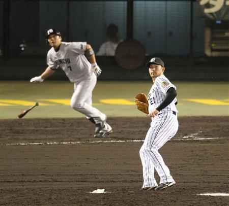 六回まで低めに球を集めてきっちりコースに投げ分け、5安打無失点と抑えていた岩田。貫禄すら漂っていた。だが、0-0で迎えた七回1死から藤井の内野安打、堂上(どのうえ)に四球、桂(かつら)の右前打で満塁のピンチを招くと、代打森野にフルカウントから中犠飛を許した。