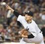 後半の出だしでつまずいた形となり、上原は「力負け。もう少し外に投げたかったけど…」。好救援を続けてきたが、今回はトラウトの勢いを止められなかった。(共同/SANKEI EXPRESS)