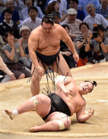 2敗力士が消え、2横綱を追う3敗は平幕の遠藤、嘉風(よしかぜ)を含む5人という展開になった。