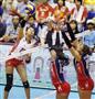 ロシア戦でスパイクを放つ迫田さおり(左)=2015年7月26日、米ネブラスカ州オマハ(ゲッティ=共同)【拡大】