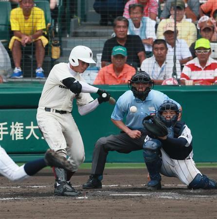 五回、先頭打者として左前安打を放ち、同点への足がかりをつくった早実の清宮(きよみや)幸太郎=2015年8月13日、兵庫県西宮市・甲子園球場(松永渉平撮影)【拡大】