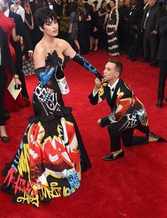 米ニューヨークでのファッションショーに登場した歌手のケイティ・ペリーさん(左)とデザイナーのジェレミー・スコットさん=2015年5月4日(ゲッティ=共同)【拡大】