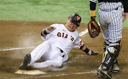 無死一、二塁。カウント2-1から、能見の甘く入ったツーシームを振り抜き、右中間に適時二塁打を放った。これに小林が左前適時打、代打・井端が左犠飛、片岡が左前適時打、坂本が左翼線適時二塁打、亀井が右越え適時二塁打で続いた。