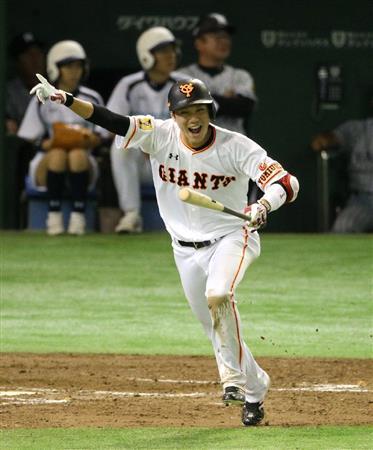九回裏、サヨナラ左安打を放った巨人の坂本勇人=2015年8月20日、東京都文京区・東京ドーム(白鳥恵撮影)【拡大】
