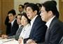 情報流出事件について会見で釈明する日本年金機構の水島藤一郎(とういちろう)理事長(左)ら=2015年8月20日、東京都千代田区の厚生労働省(早坂洋祐撮影)【拡大】