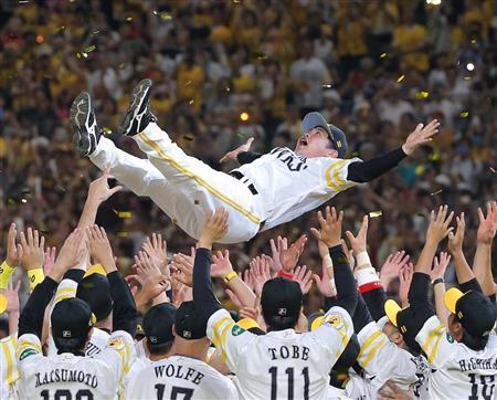 リーグ優勝をを決め胴上げされるソフトバンクの工藤公康(きみやす)監督=2015年9月17日、福岡県福岡市中央区の福岡ヤフオクドーム(春名中撮影)【拡大】