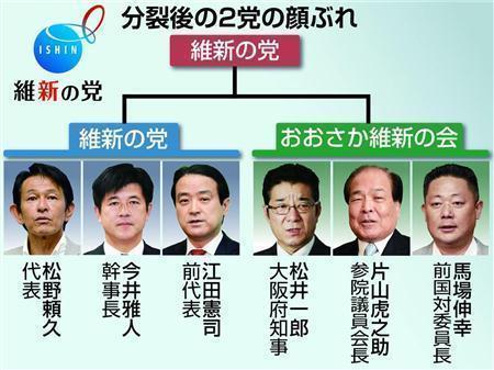 橋下氏は記者会見で、東京の一極集中を是正するため、大阪を「副首都」とする構想を明らかにし、「地方分権の国に変える」と新党結成の意義を語った。党名に地域名を入れたことには、「地方分権の象徴だ」と説明した。維新の党に対しては「偽物の維新になった」と述べ、民主党との合流を視野に入れる松野頼久代表(55)らを批判。「本物の維新の会をもう一度作り直す」と訴えた。