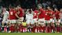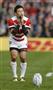 南アフリカ戦の試合終了後、寄せ書きのされた日の丸を掲げる畠山(はたけやま)健介選手=2015年9月19日、英イースト・サセックス州ブライトン(山田俊介撮影)【拡大】