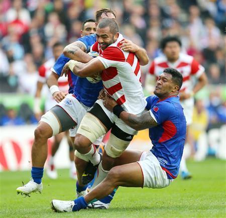 過去に、ラグビーの母国でファンにまねされる日本選手はいなかった。イングランドで開催中のワールドカップ(W杯)で名将エディー・ジョーンズに率いられた日本代表は、初戦の南アフリカに続き、サモアを破って2勝目を挙げた。