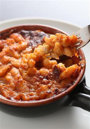 グツグツと音を立てて運ばれてきたのは、看板メニューの「カスレ」(2400円)。鴨のコンフィと豚バラの煮込み、ソーセージ、白インゲン豆のオーブン焼きで、フランス南西部の名物料理だそうだ。「本来は冬の料理なんですが、お客さまに好評なので定番メニューにしています」と浦田さん。