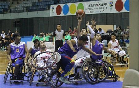 車いすバスケットボールで来年のリオデジャネイロ・パラリンピック予選を兼ねたアジア・オセアニア選手権第6日は15日、千葉ポートアリーナで男子の準々決勝が行われ、1次リーグB組2位の日本はA組3位のマレーシアに86-15で大勝した。16日の準決勝で日本は、昨年の世界選手権覇者でA組1位のオーストラリアと対戦する。イランも4強入りを決めた。