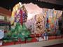 舞台装置は往年の歌番組「夜のヒットスタジオ」をイメージして作るという。宮藤官九郎(くどう・かんくろう)さん(中)を囲む伊勢志摩さん(左)と池津祥子(いけづ・しょうこ)さん(右)=2015年10月13日、東京都新宿区(宮崎瑞穂撮影)【拡大】